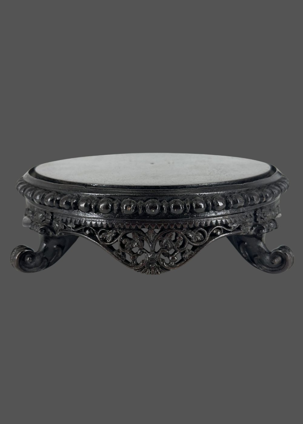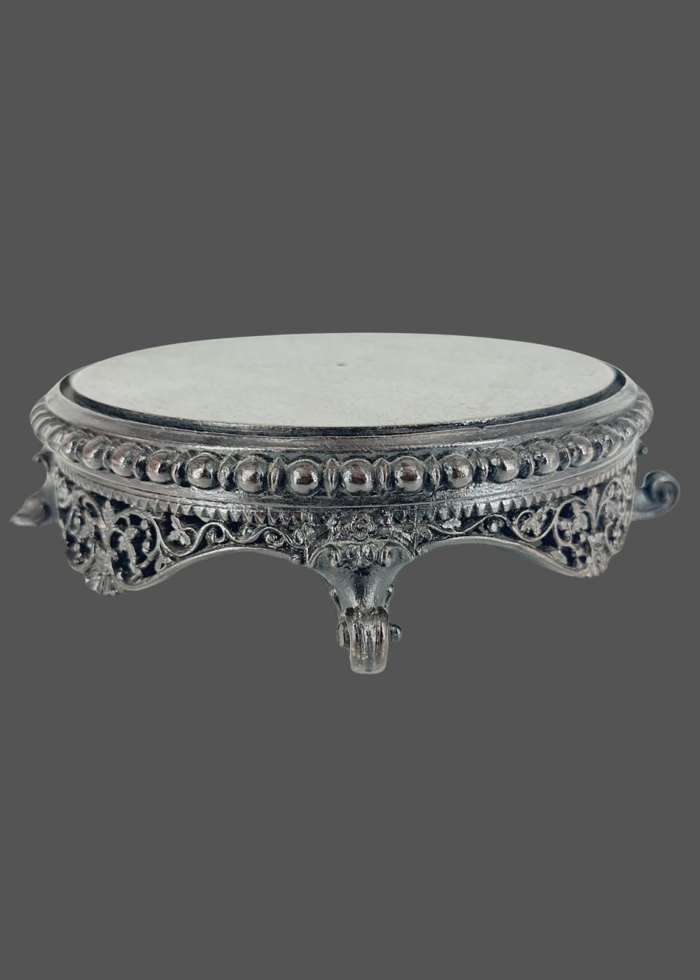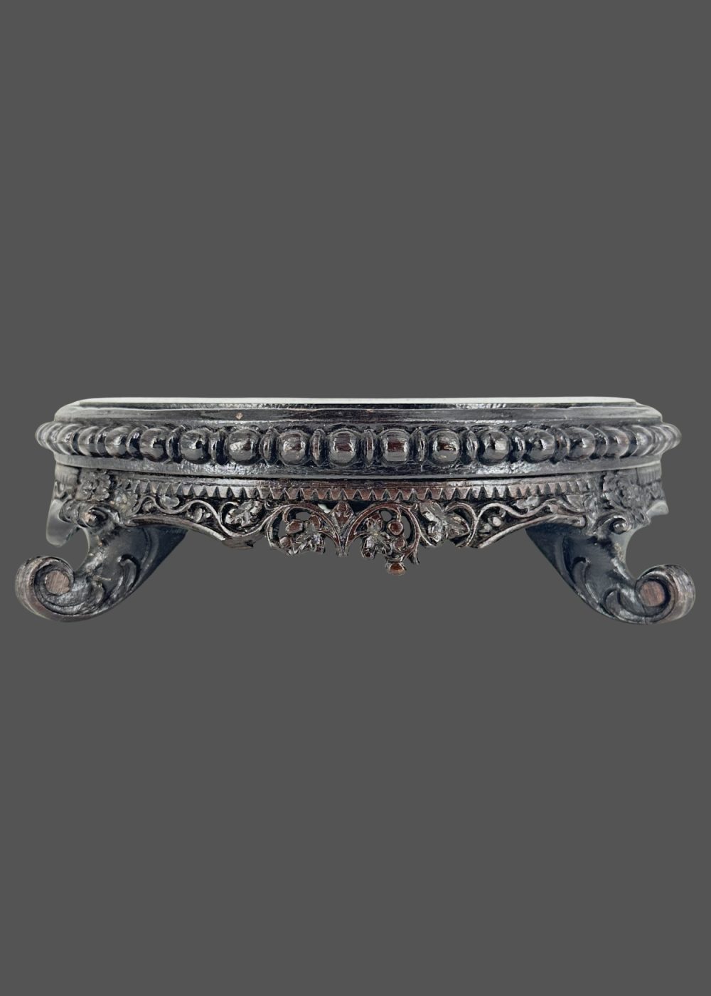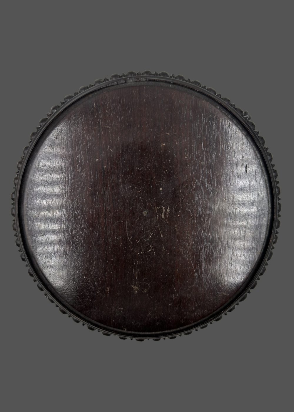 This ornately carved wooden pedestal from 20th-century North India showcases the region’s rich cultural heritage and exceptional craftsmanship. Featuring intricate floral motifs and elegantly curved legs, the piece was likely used as a base for idols, lamps, or ceremonial items. Its detailed design and sturdy form reflect traditional woodworking techniques and aesthetic sensibilities passed down through generations.