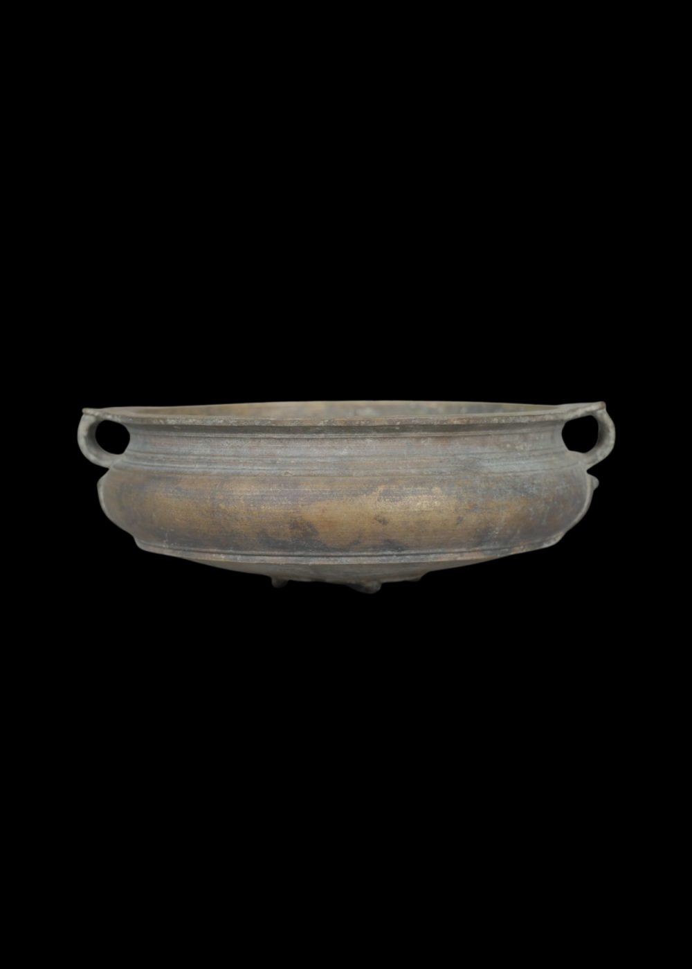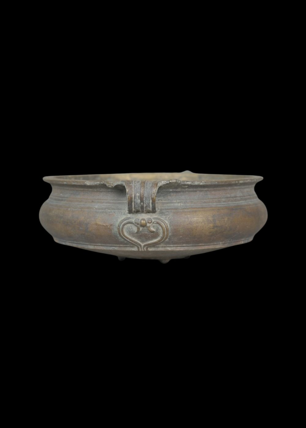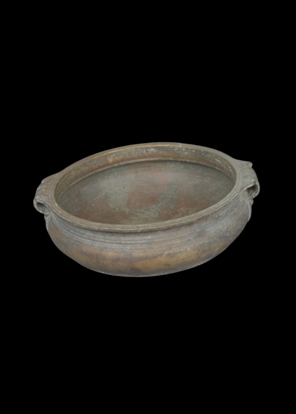 This Antique Bronze Ulri is a traditional South Indian vessel characterized by its rounded body, wide rim, and sturdy twin handles on either side. Resting on small raised supports, it was historically used for cooking or serving during rituals and festive occasions. The patina developed over time enhances its rustic charm, reflecting age, use, and cultural heritage. Crafted through skilled metal casting, the Ulri embodies the utilitarian elegance and enduring craftsmanship of traditional South Indian bronze ware.