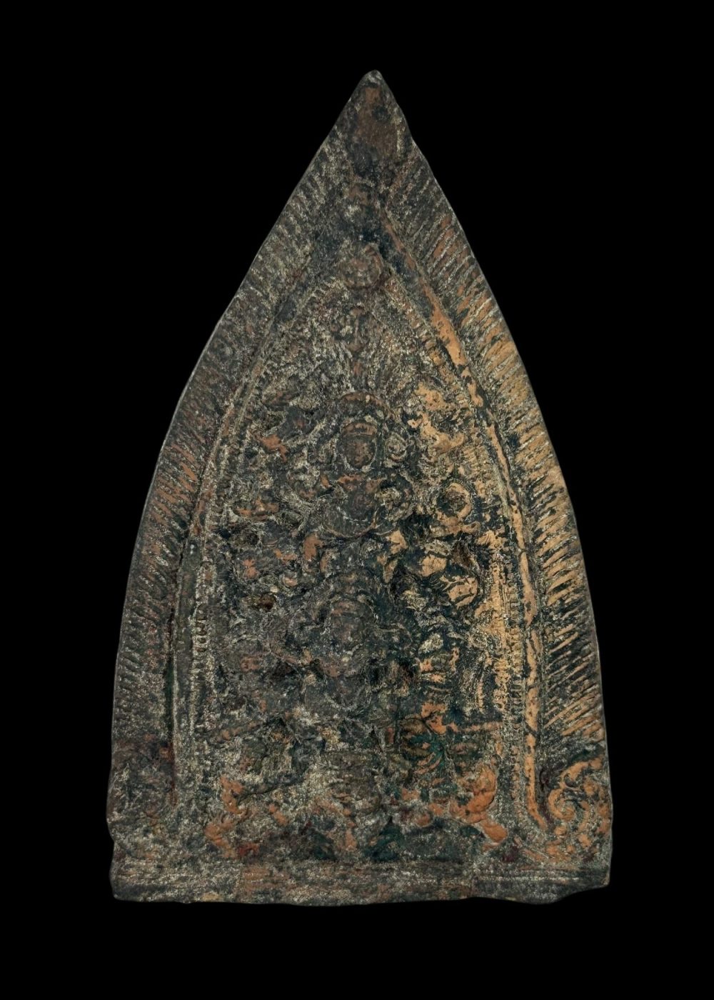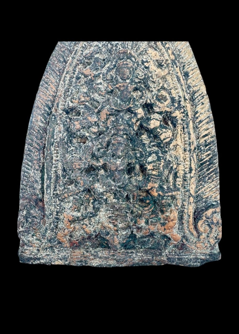 This intricately molded clay plaque from Bahram, dating to the mid-20th century, showcases the region’s traditional artistic motifs. The pointed arch form and detailed surface reflect devotional themes and local craftsmanship, embodying the cultural expressions of rural artisans during this period.