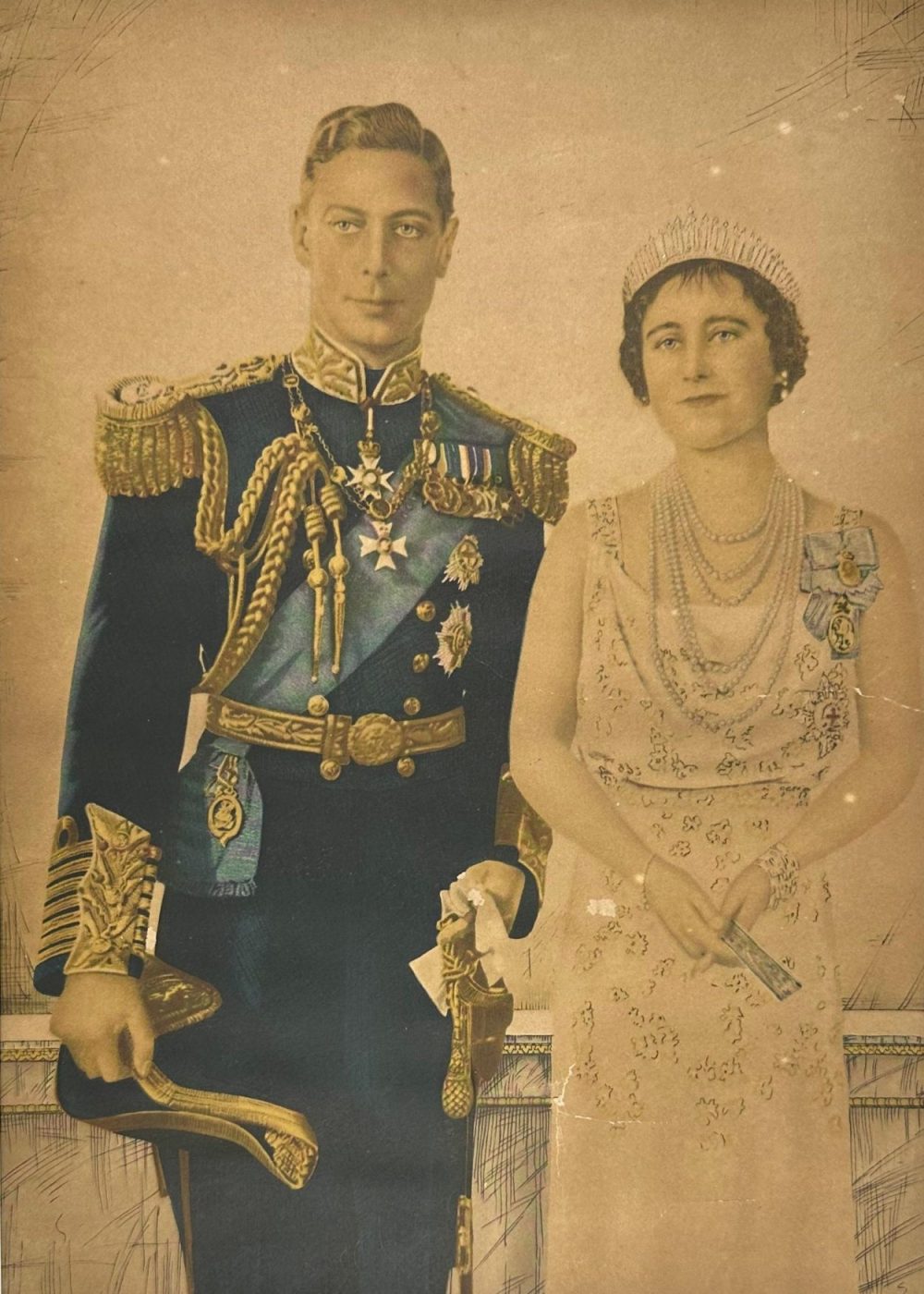 This portrait represents the royal couple in a period of profound historical significance, as King George VI assumed the throne following the abdication crisis of Edward VIII. The image was widely circulated during the early reign to reinforce royal continuity and national stability, especially leading into the Second World War. It reflects both the grandeur of monarchy and the evolving role of the royal family as symbols of unity and resilience in modern Britain.