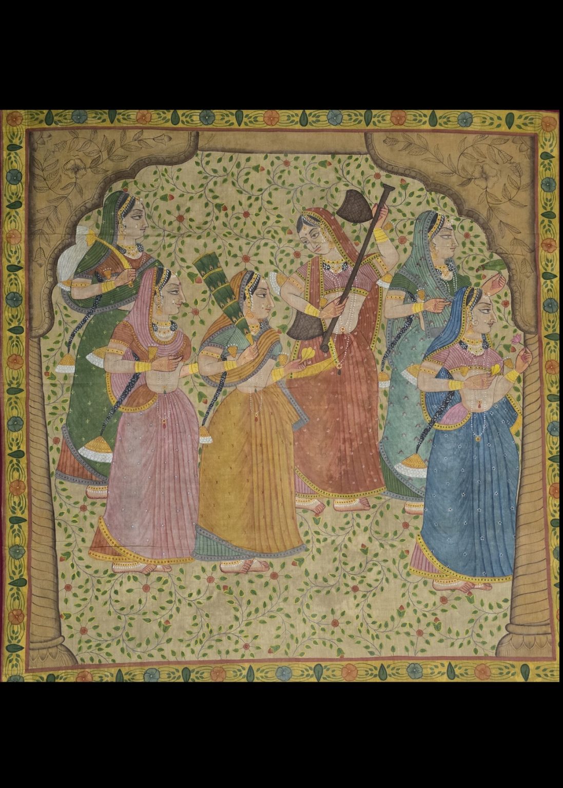This piece beautifully exemplifies the meticulous craftsmanship and serene aesthetics of traditional Indian watercolor art.
