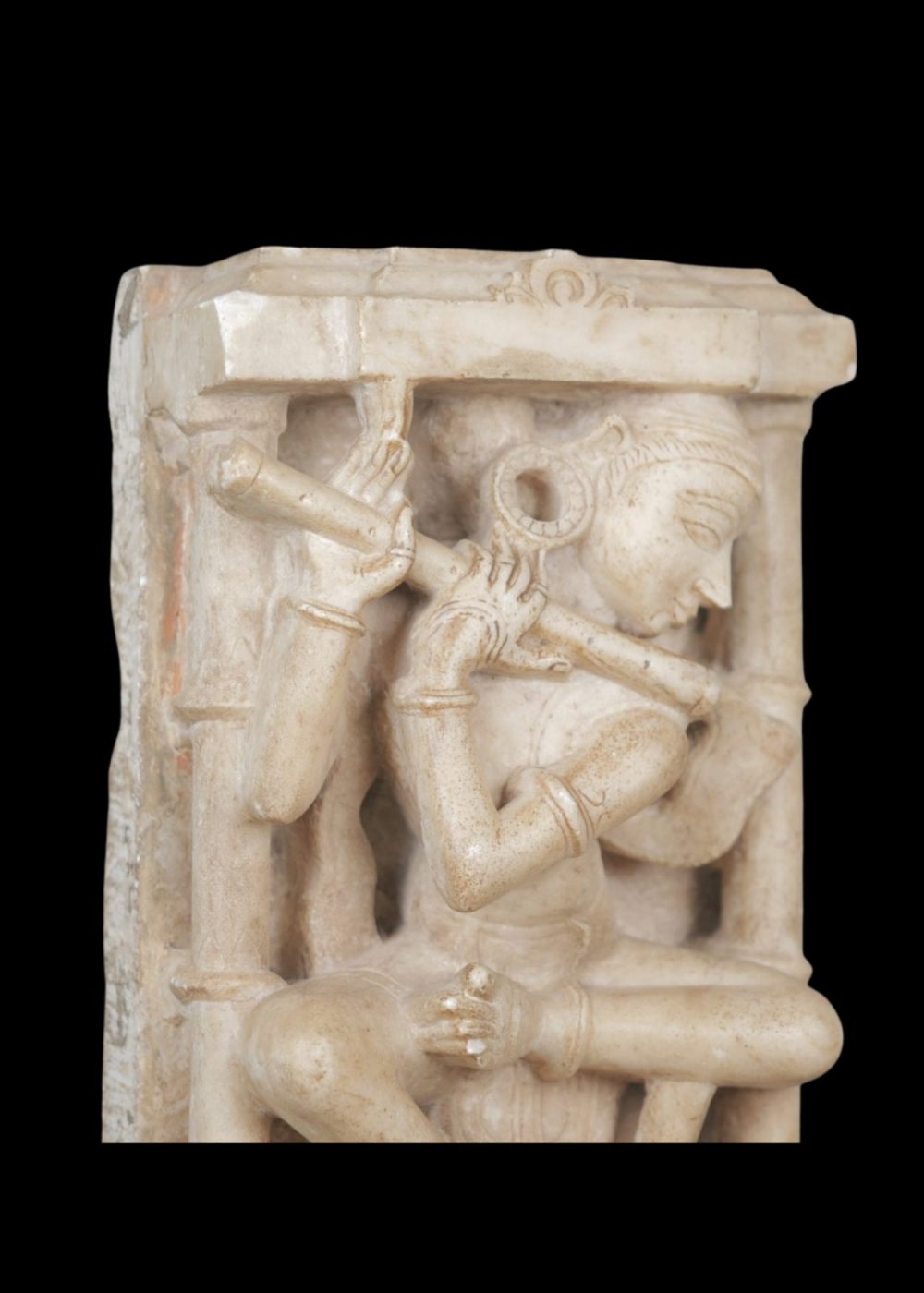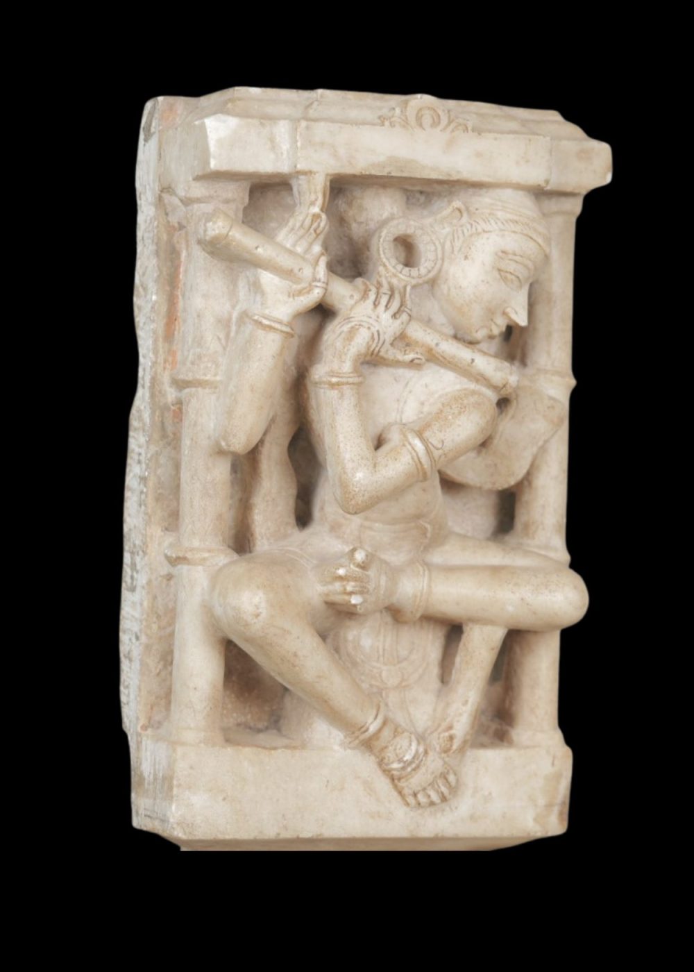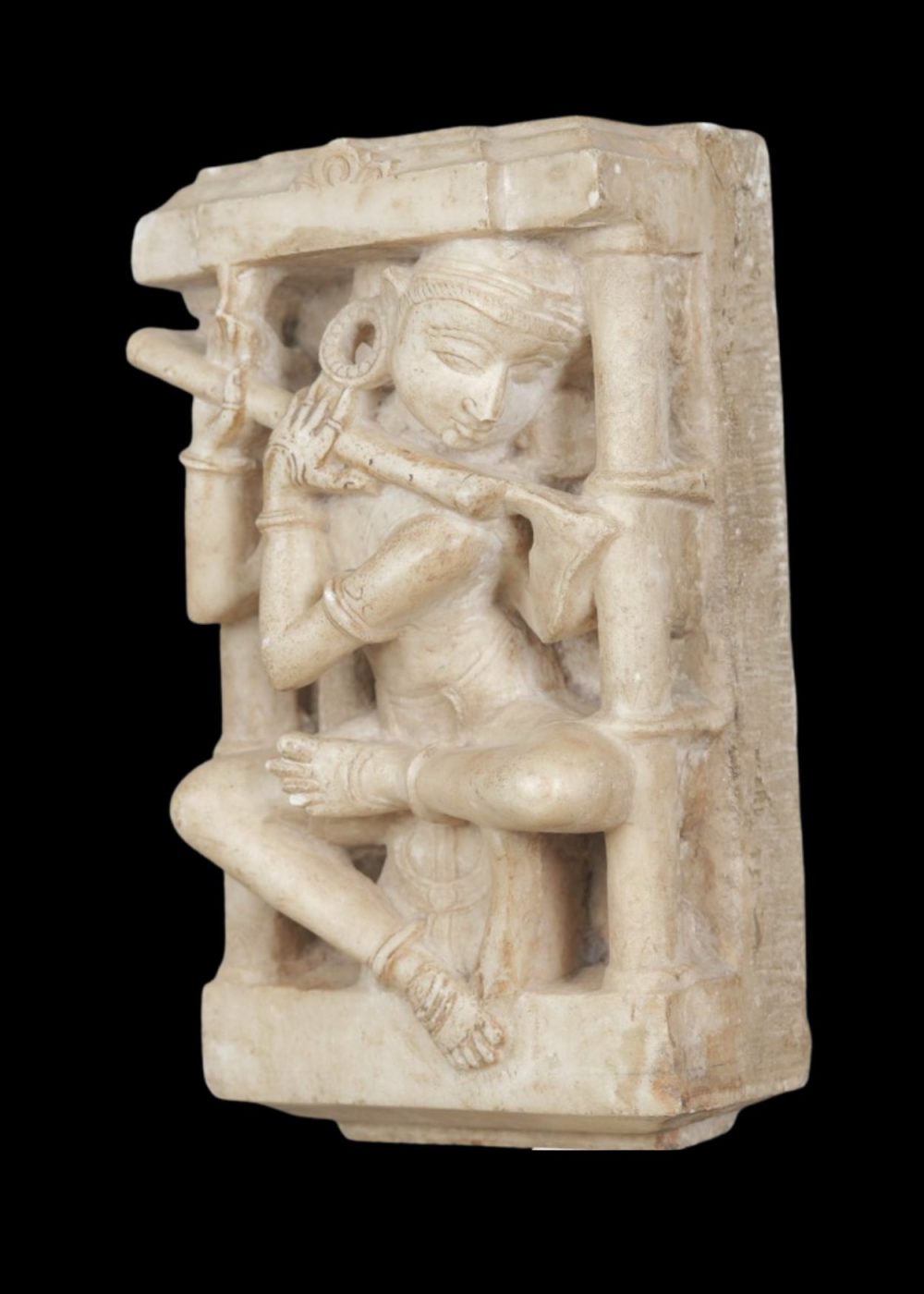 MARBLE SCULPTURE OF FLUTE PLAYER IN ARCHITECTURAL NICHE