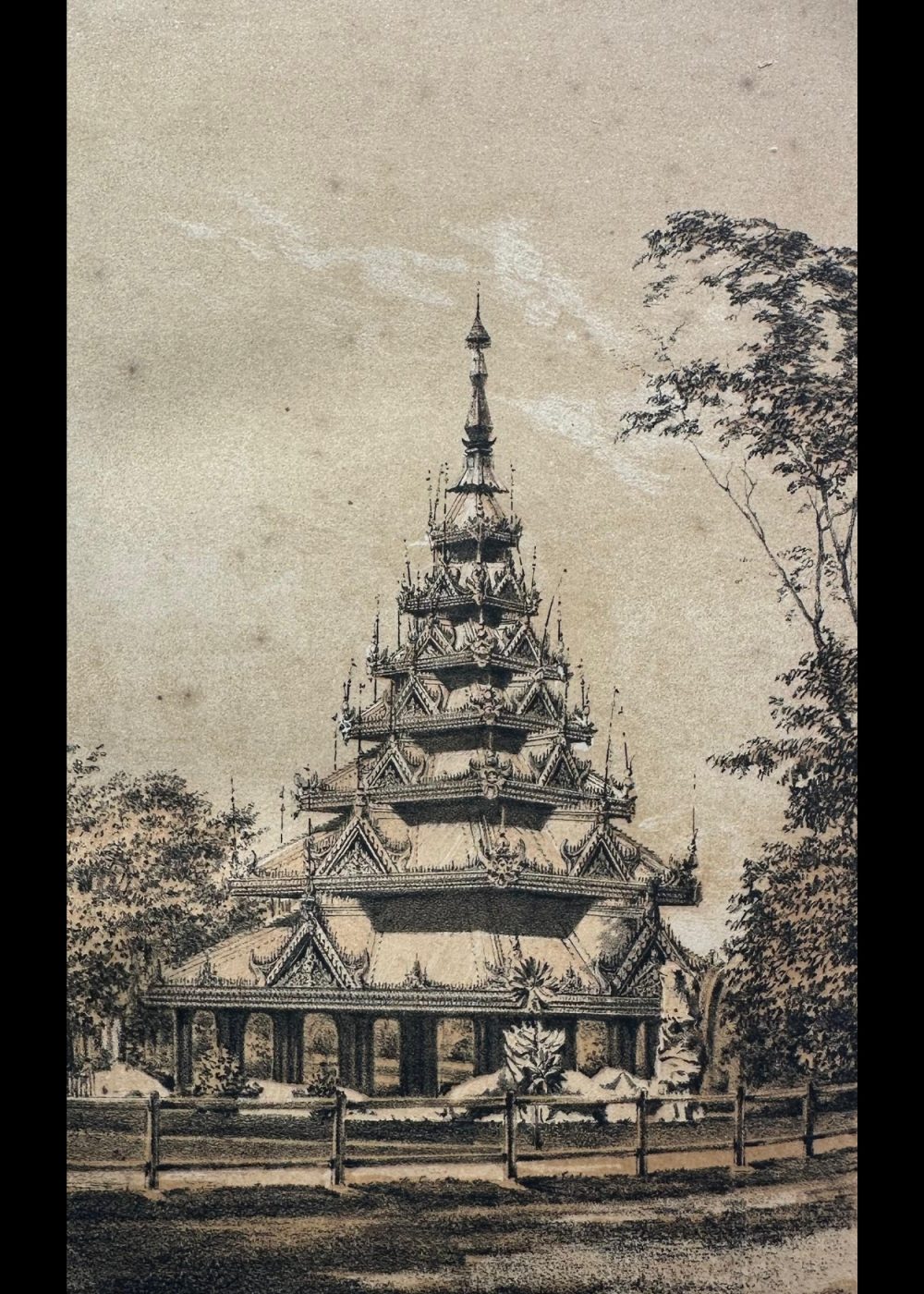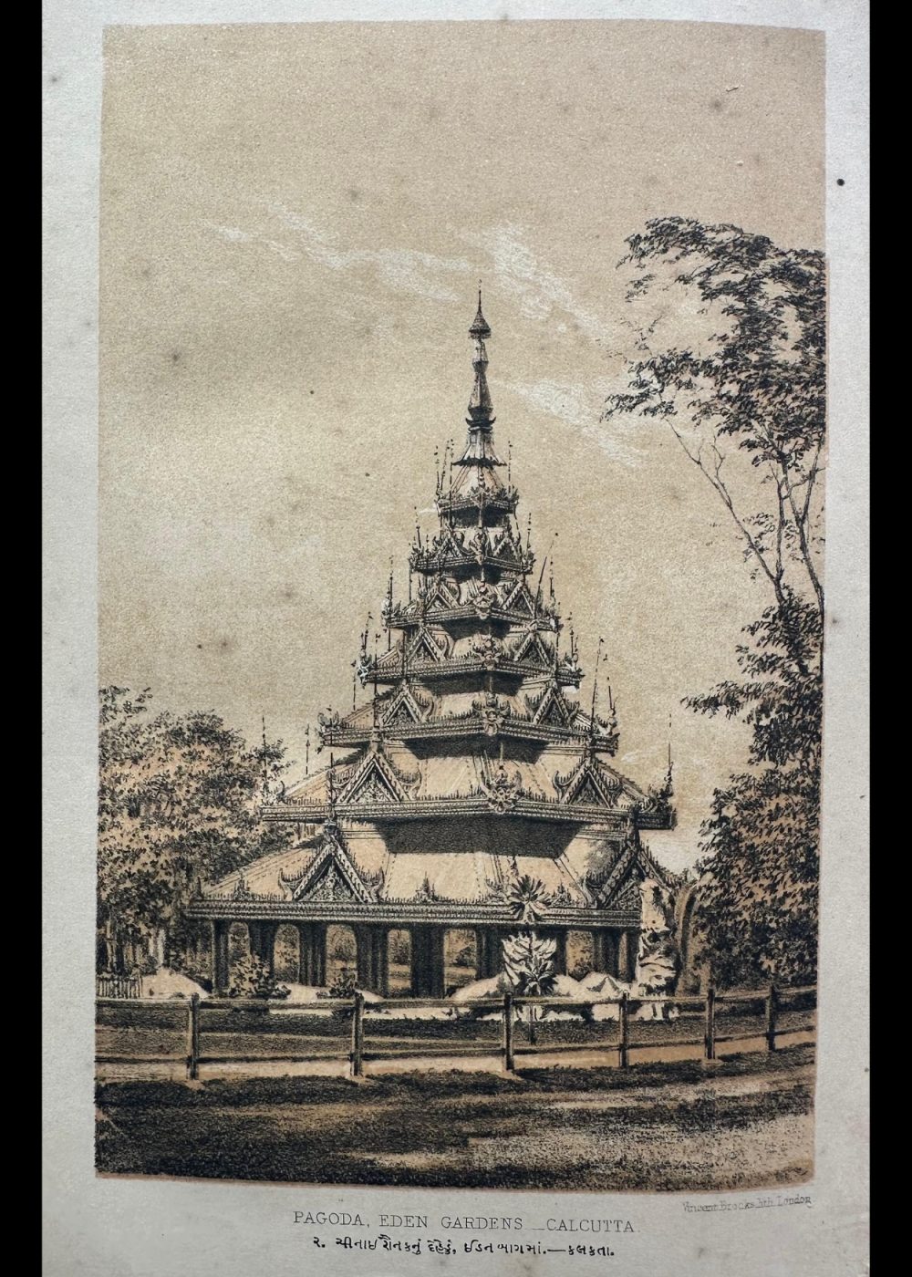The lithograph is an important historical record, offering a glimpse into the fusion of British colonial interests with Asian influences in the development of public spaces in Calcutta. It also highlights the global exchange of cultural elements, where exotic architectural styles were embraced and showcased as part of the colonial landscape.