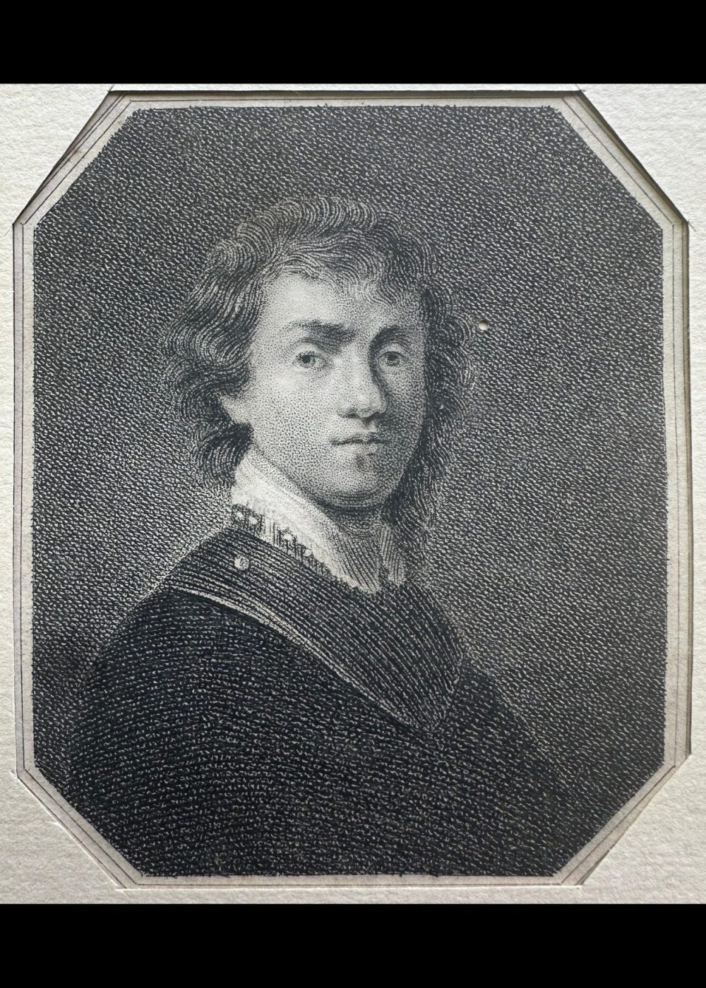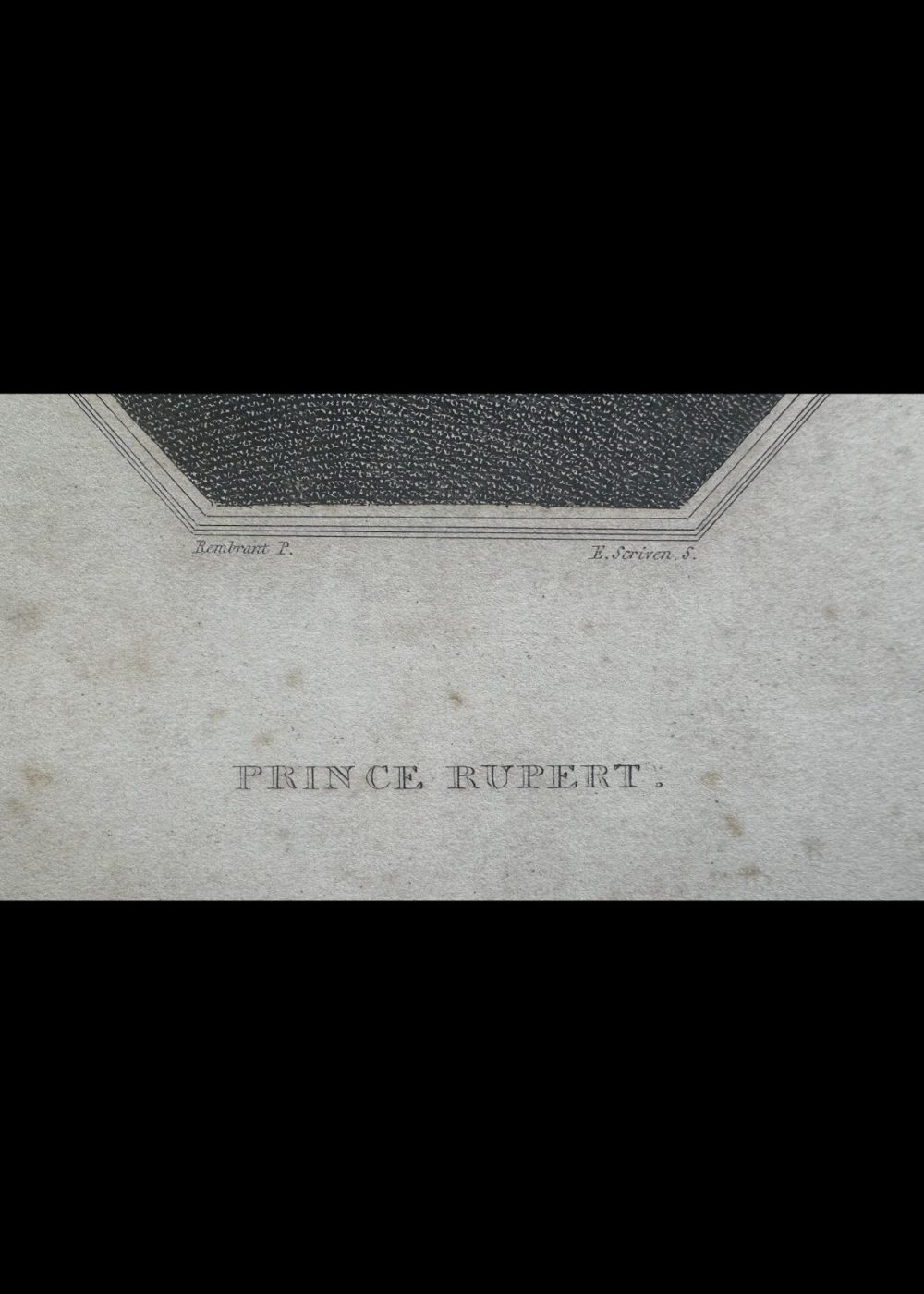 17 or 27th DEC 1619-29TH NOV 1682 OR 9TH DEC 1682 Publish 1810. This refined engraving presents Prince Rupert of the Rhine, a prominent 17th-century royalist commander and patron of the arts. The figure is shown in a high-collared, embroidered garment, with subtly shaded curls framing his composed expression. The textured backdrop provides visual depth, while the crisply incised lettering below identifies both sitter and creators—“Prince Rupert,” with attribution to “Rembrandt P.” and “E. Scriven S.” The print exemplifies 19th-century interest in historical portraiture, pairing technical delicacy with romanticized reverence for royal lineage.