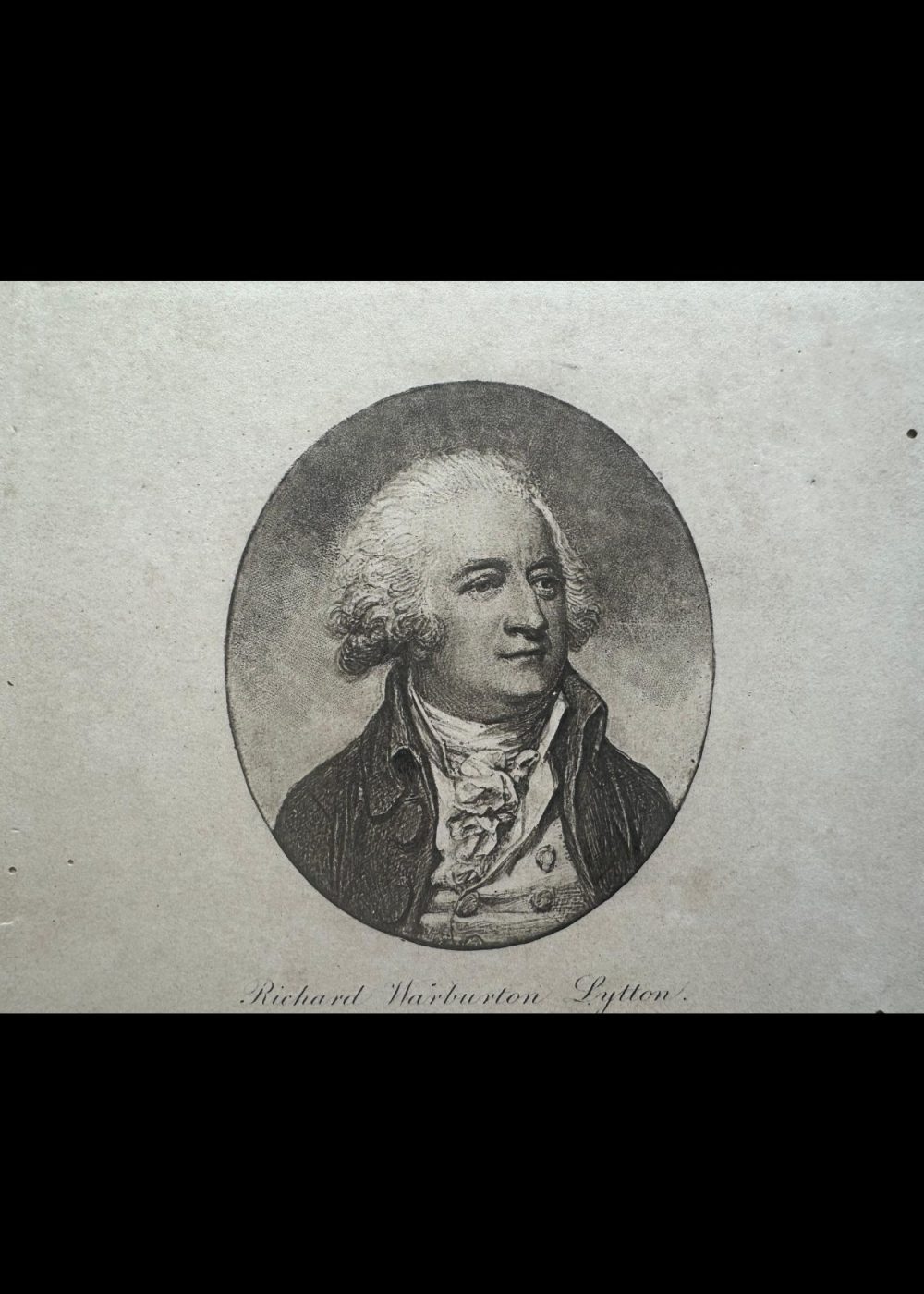 This elegant 18th–19th century print features a central portrait of Richard Warburton Lytton, an English landowner and member of a prominent family. Below are two miniature portraits framed in ornate floral ovals: Elizabeth Jodrell and Elizabeth Barbara Lytton, likely his wife and daughter respectively. Engraved with fine detail, the print reflects the refined aesthetic of its period and preserves the legacy of an influential British lineage. The inscription notes the engraver as “A. Dawson. Photo. Sc.”