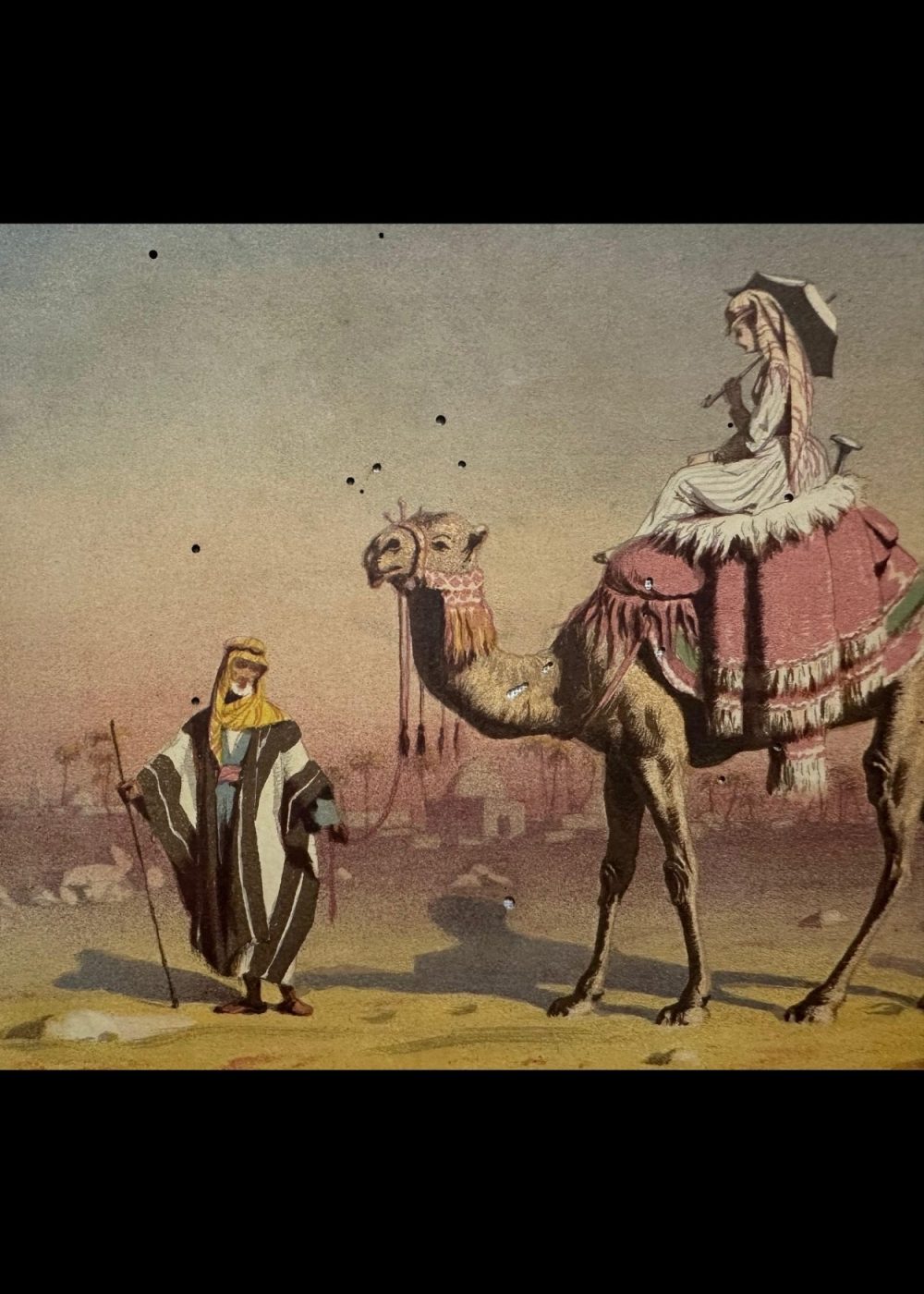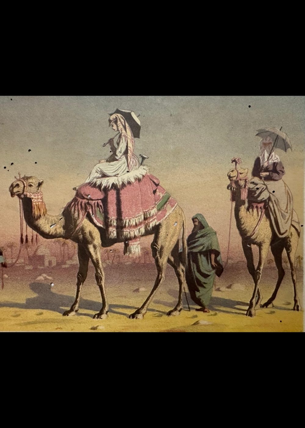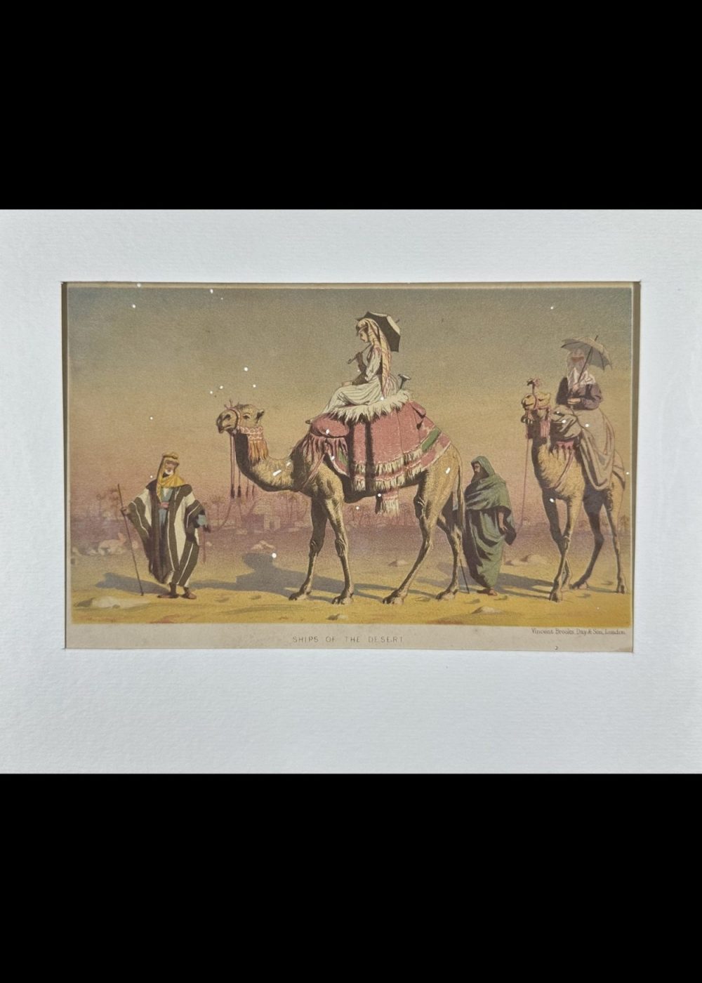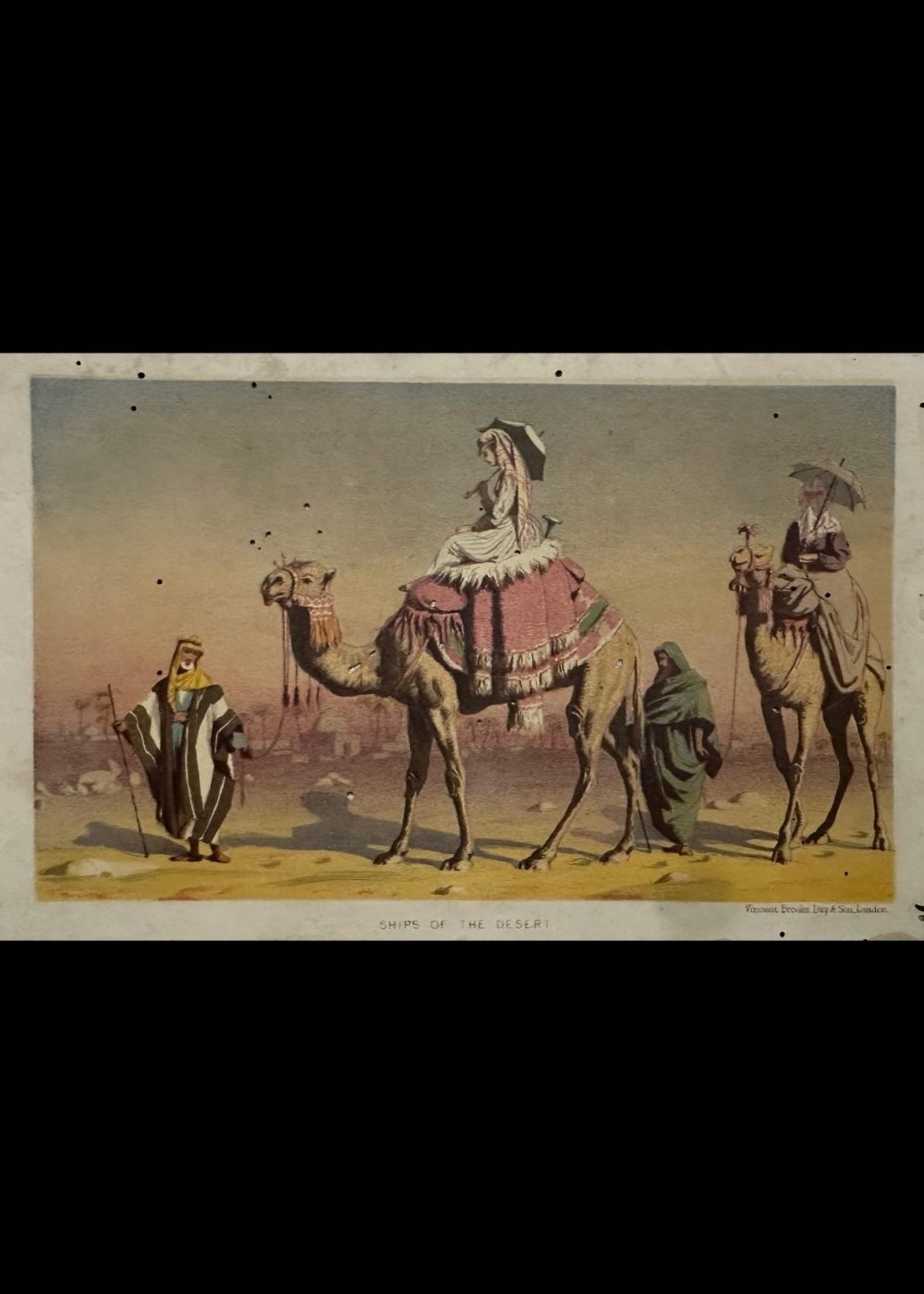 Produced by the prominent British lithographers Vincent Brooks, Day & Son, this image reflects the Victorian-era fascination with the exotic “Orient,” blending ethnographic curiosity with imperial fantasy. The term “ships of the desert” poetically underscores the camel’s indispensable role in desert transportation and trade.