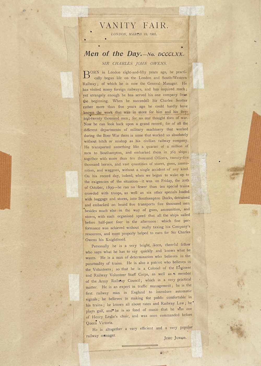 Personally he is a very bright, keen, cheerful fellow who says what he has to say quickly and knows what he wants. He is a man of determination who believes in the punctuality of trains. He is also a patriot who believes in the Volunteers; so that he is a Colonel of the Engineer and Railway Volunteer Staff Corps, as well as a member of the Army Railway Council; which is a very practical matter. He is an expert in traffic management; he is the first railway man in England to introduce automatic signals; he believes in making the public comfortable in his trains; he knows all about rates and Railway Law; he plays golf, and he is so fond of music that he was one of Henry Leslie’s choir, and was once commanded before Queen Victoria.