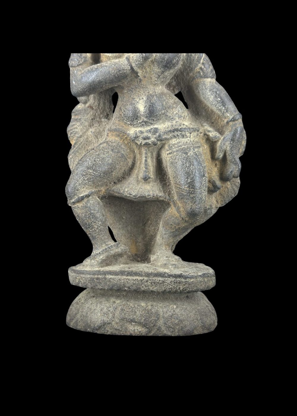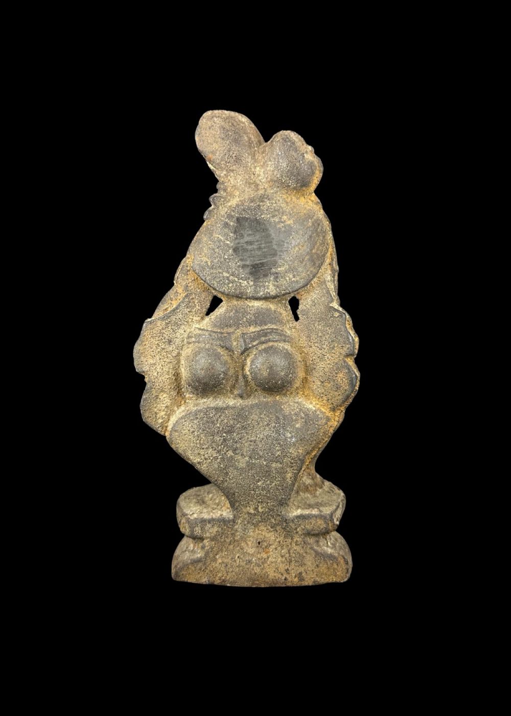This beautifully crafted iron idol depicts a divine feminine figure in a classical dance posture, exuding elegance and poise. Likely inspired by tribal or folk traditions, the sculpture showcases intricate detailing in the attire and posture, highlighting the artisan’s skill. With a serene expression and symbolic hand gesture, this piece is a fine example of traditional Indian craftsmanship, ideal for collectors of ethnic and rustic decor or antique metal art.