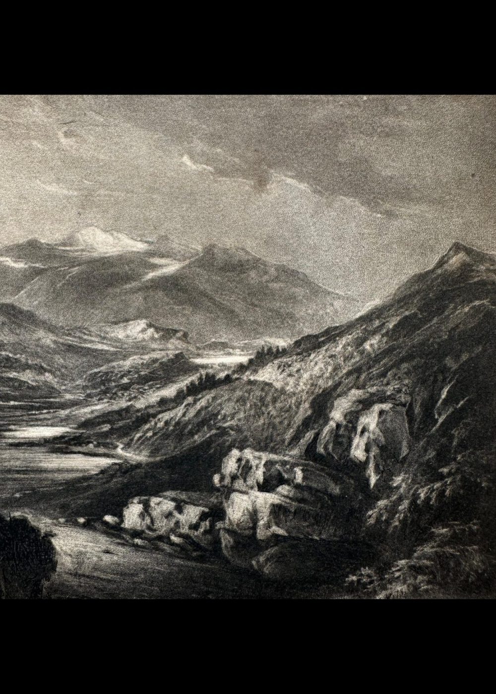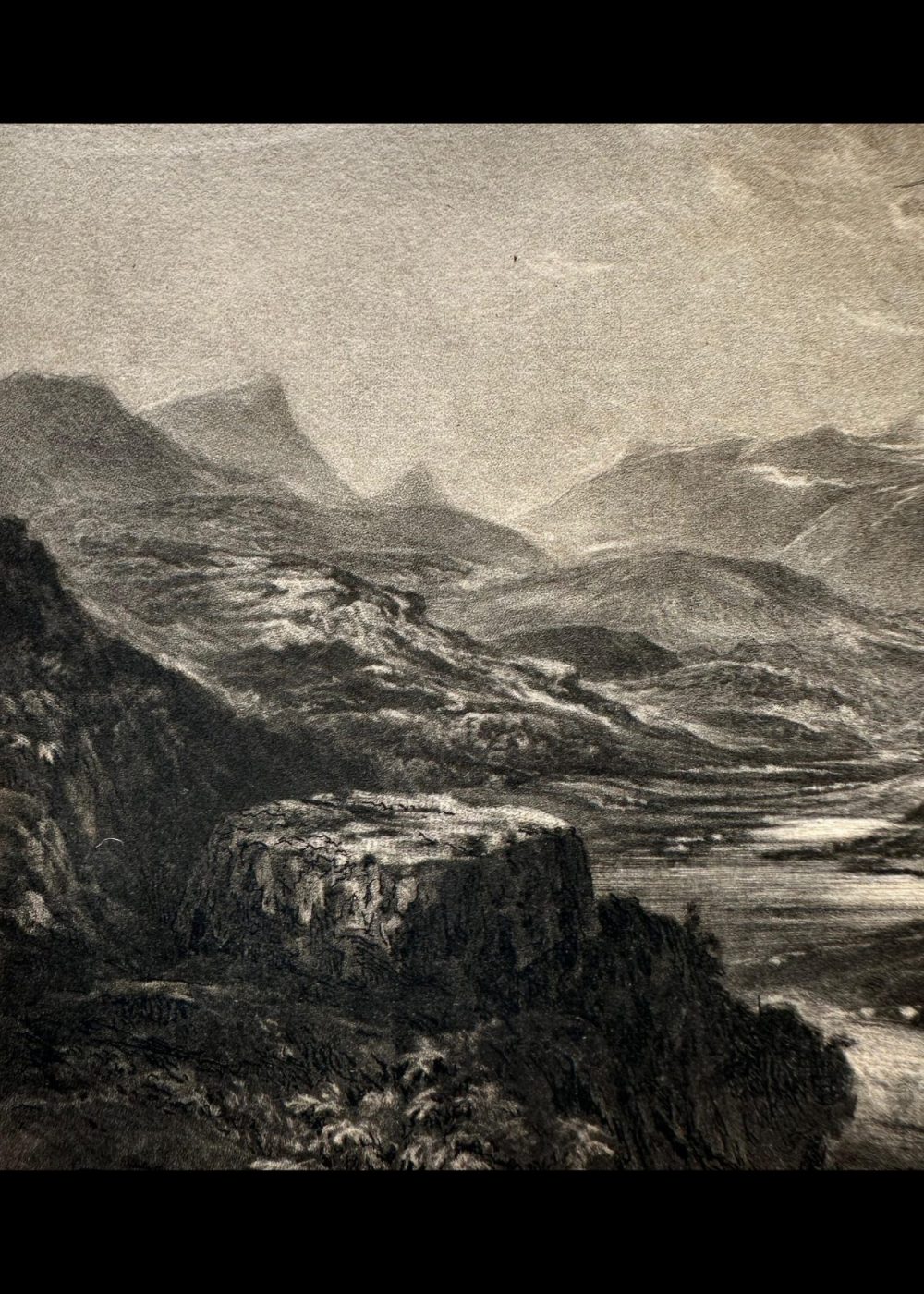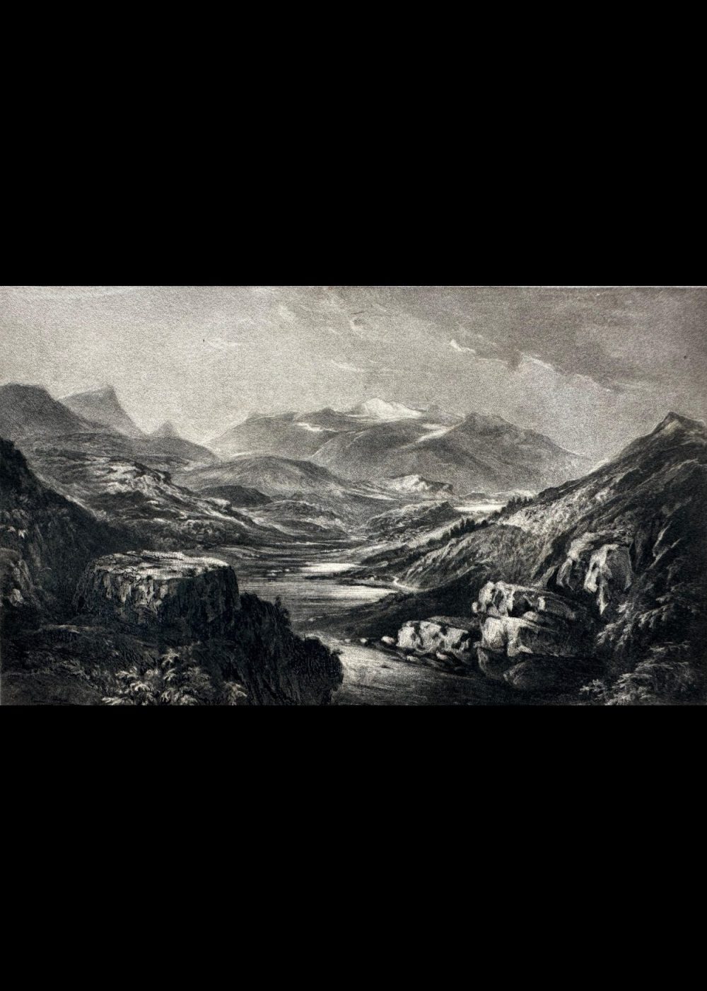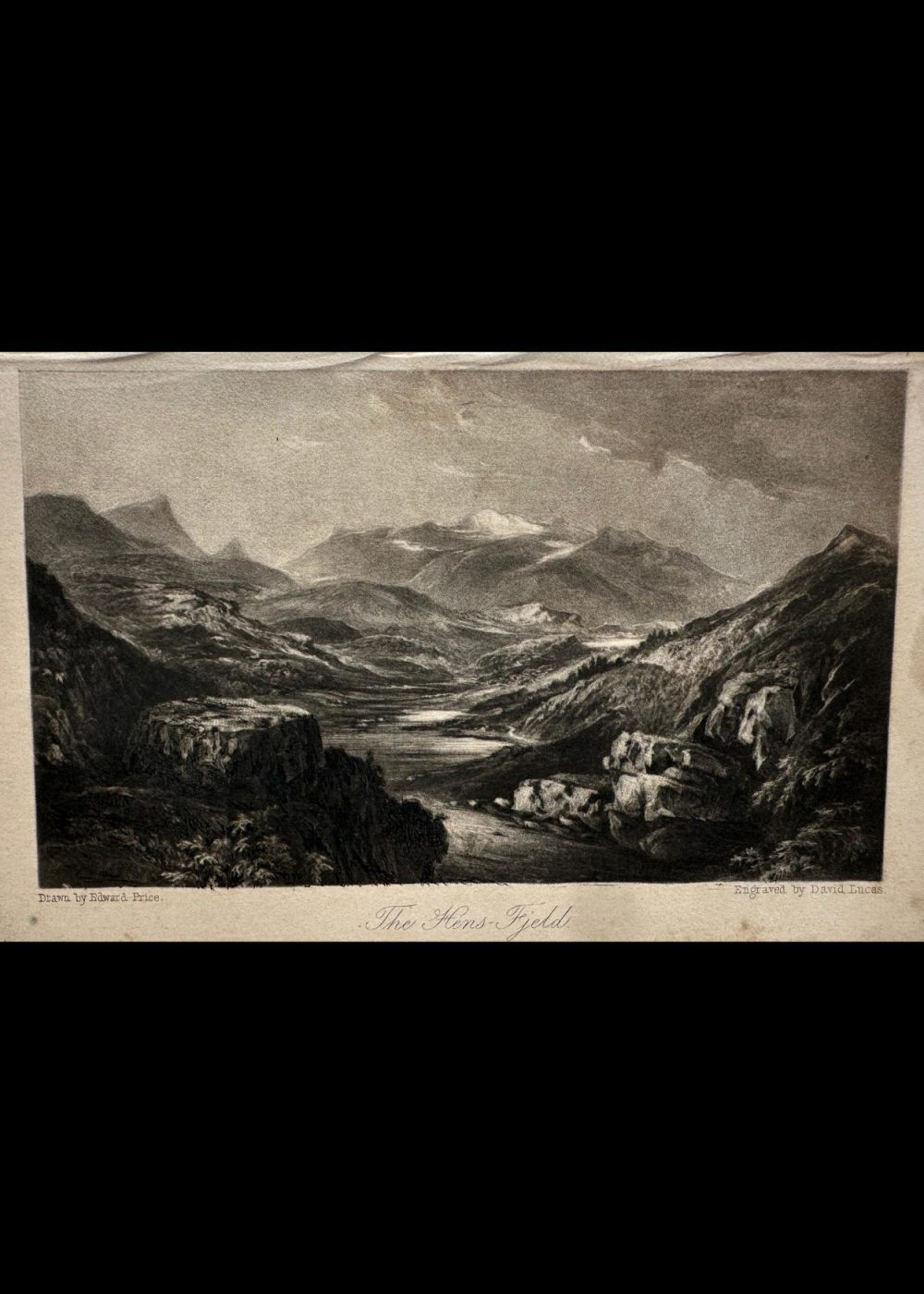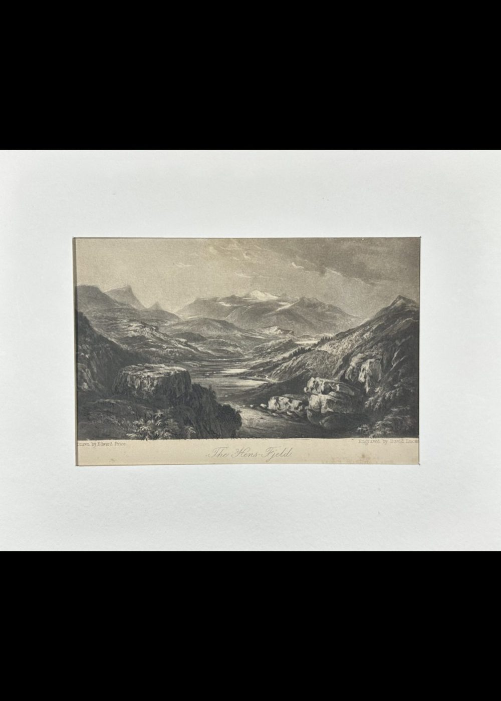 This engraving by David Lucas, after Edward Price, presents a dramatic view of Hens-Fjeld’s rugged mountain terrain. Snow-capped peaks rise in the distance beneath a cloudy sky, while rocky cliffs and deep valleys dominate the foreground. The composition captures the grandeur and isolation of the Scandinavian landscape with intricate detail and atmospheric depth.