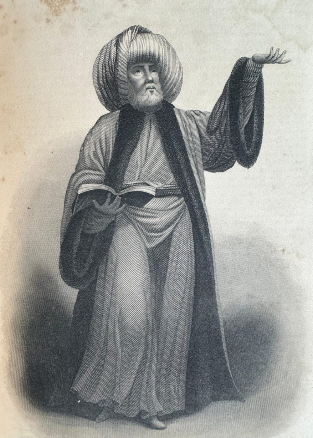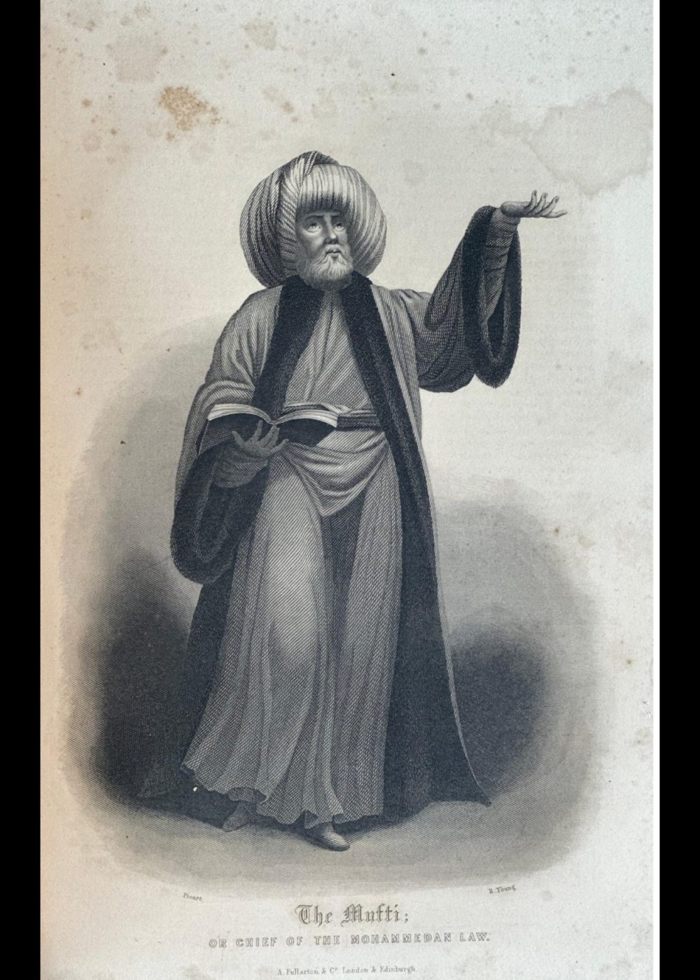 “THE FAITHS IN THE WORLD”. A dictionary of all religions and their religious sects. by The Rev. James Gardner. This finely detailed 19th-century engraving presents the Moti Masjid (Pearl Mosque) in Agra, India, framed by an ornate archway. Built by Mughal Emperor Shah Jahan, the mosque is celebrated for its pristine white marble and harmonious proportions. In the foreground, figures in traditional attire add life to the scene, illustrating daily activity within the mosque’s courtyard. The architectural symmetry and delicate carving reflect the grandeur of Mughal aesthetics. Published by A. Fullarton & Co., London & Edinburgh, this print captures both the spiritual and artistic legacy of Mughal India.