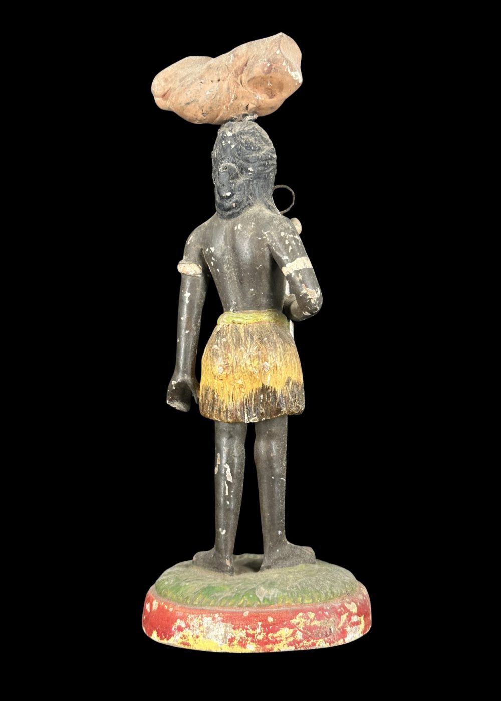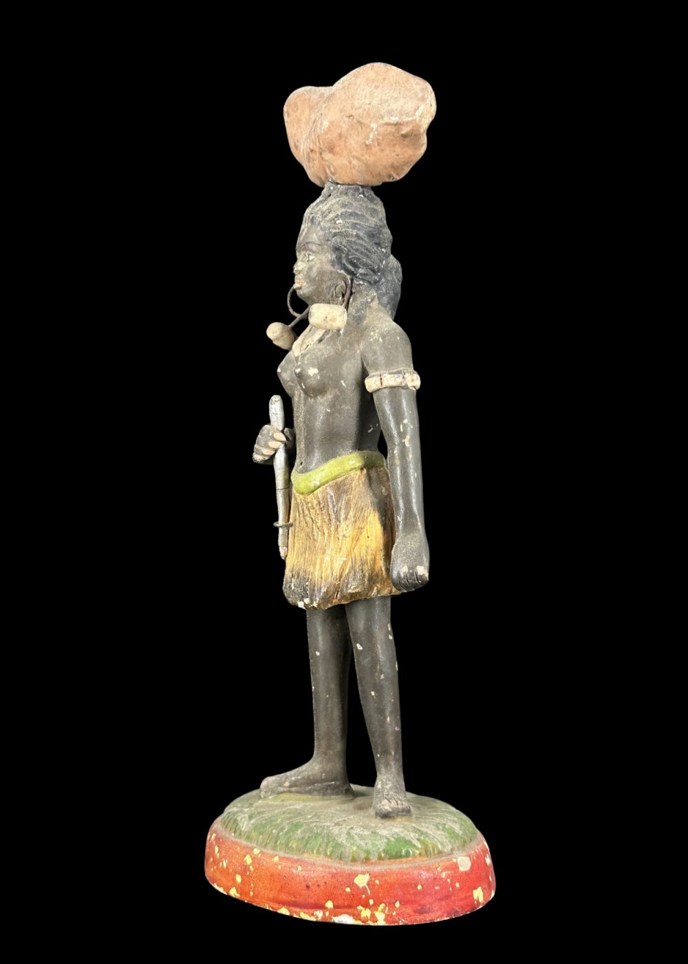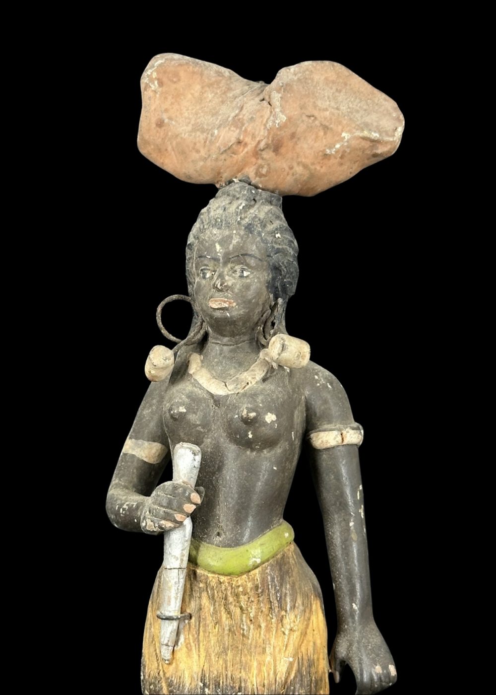 This figurine represents a tribal woman depicted in a naturalistic stance, balancing a bundle of firewood on her head. She is adorned with traditional jewelry and wears a grass-textured skirt, reflecting indigenous attire and customs. The earthy tones and simplified features emphasize her connection to nature and daily subsistence activities. Symbolizing strength, endurance, and cultural identity, the figure pays homage to the resilience and dignity of tribal communities and their harmonious coexistence with the environment.