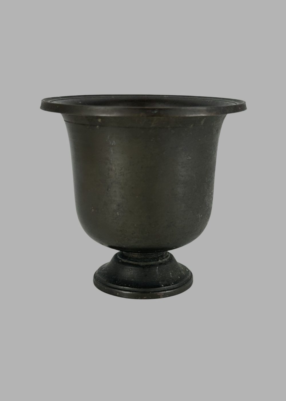 This bronze vessel from North India features a simple yet elegant form with a flared rim and rounded base. Reflecting the region’s refined metalworking tradition, it was likely used in religious or ceremonial contexts, embodying the aesthetic and spiritual values of the period.