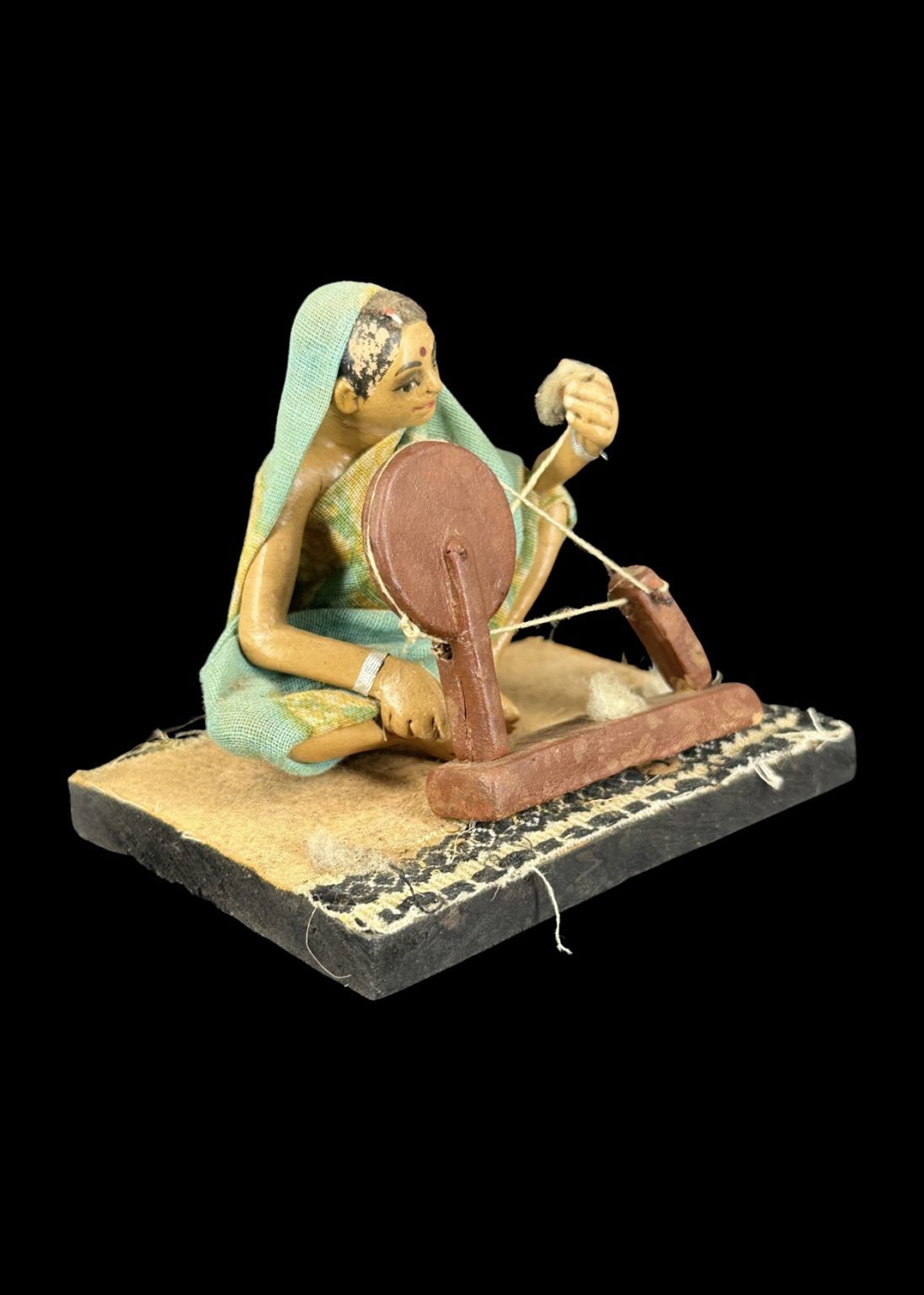 This finely crafted figurine depicts a young tribal boy engaged in playing a traditional drum strapped across his chest. Dressed in a patterned cloth wrap and adorned with beaded jewelry and a headband, the figure reflects the cultural richness and rhythm of tribal life. The boy’s poised stance and focused expression suggest participation in a community festival or ritual dance. Celebrating youth, tradition, and music, this piece embodies the continuity of indigenous cultural heritage through generations.